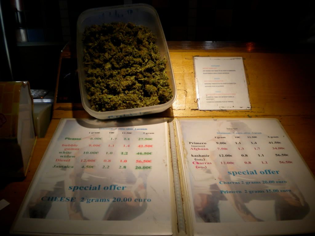 PICASSO SPECIAL at 6 euro a gram. 6 euro a gram? On Haarlemmerstraat? And, believe it or not, it was damn good! Tasted like MUCH higher priced smoke...well cured, uplifting sativa dominated strain that made us ask again: 6 euro a gram?
